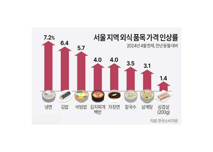 바르다김선생, 김밥 등 100∼500원 올려…굽네치킨 고추바사삭 2만원 육박파파이스·KFC, 배달메뉴 더 비싼 이중가격제…맥도날드·피자헛도 내달 2일 인상5월 가정의달을 앞두고 외식 물가가 뛰어 소비자 부담이 가중될 전망이다.28일 한국소비자원 가격정보종합포털 참가격에..